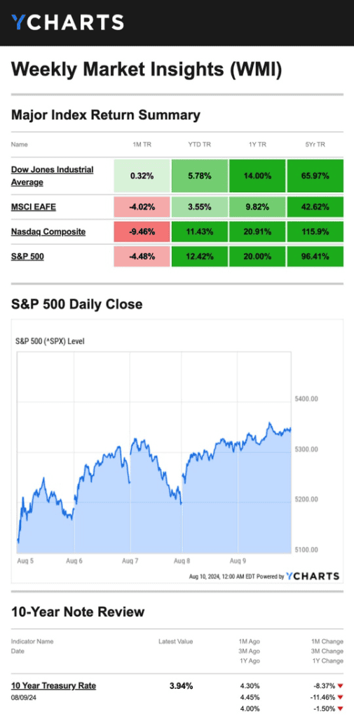 Source: YCharts.com, August 10, 2024. Weekly performance is measured from Monday, August 5, to Friday, August 9.