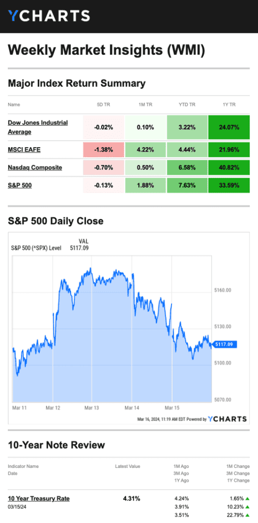 Source: YCharts.com, March 16, 2024. Weekly performance is measured from Monday, March 11, to Friday, March 15.